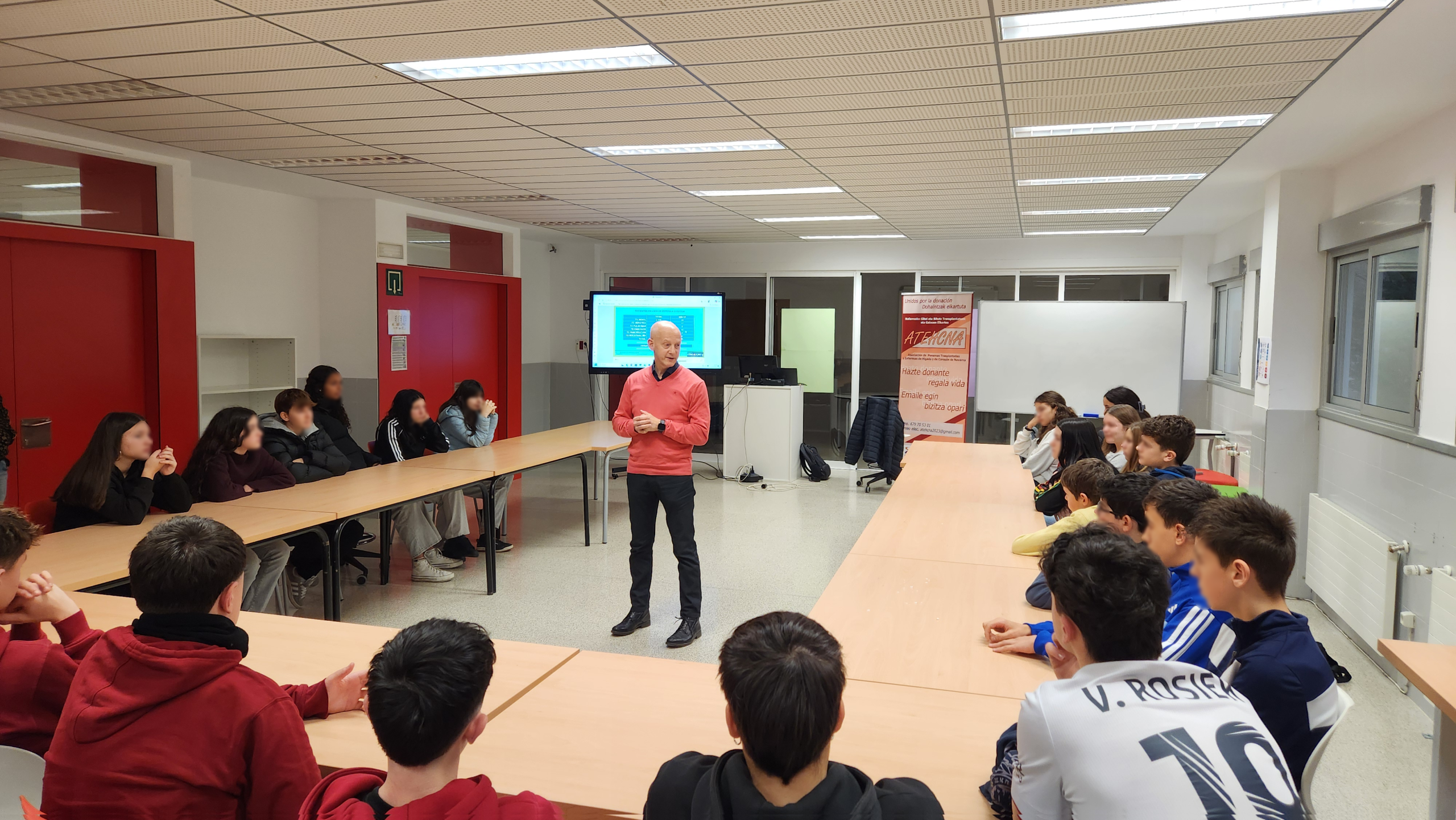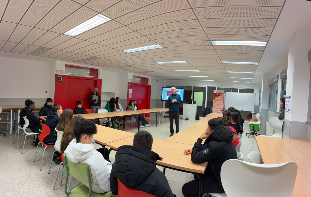 Hemos estado hoy Arturo y Fernando, hemos dado 3 charlas de 30, 18 y 23 alumnos y alumnas, en una de las charlas Arturo ha tenido que responder a unas cuantas preguntas que le han hecho los alumnos.