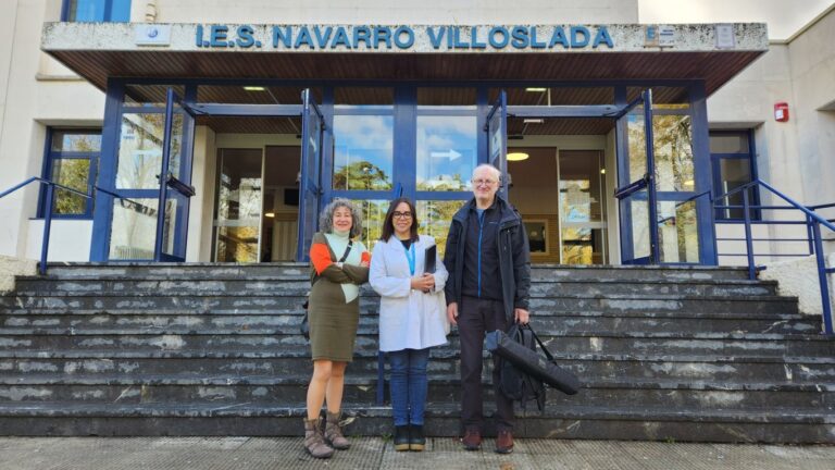 Hemos estado en el IES Navarro Villoslada dos días, el día 26 una charla con 60 alumnos y alumnas, dando