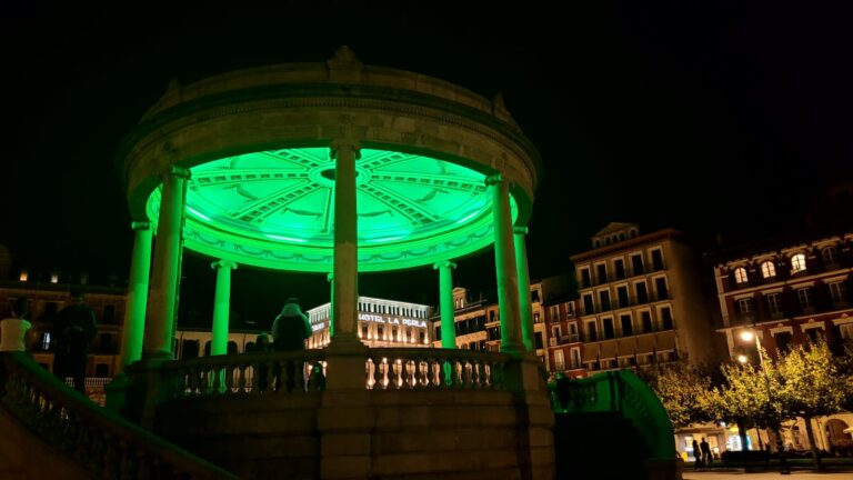 Hoy el ayuntamiento de Pamplona ha iluminado de verde, el kiosco de la Plaza del Castillo en apoyo al “Día