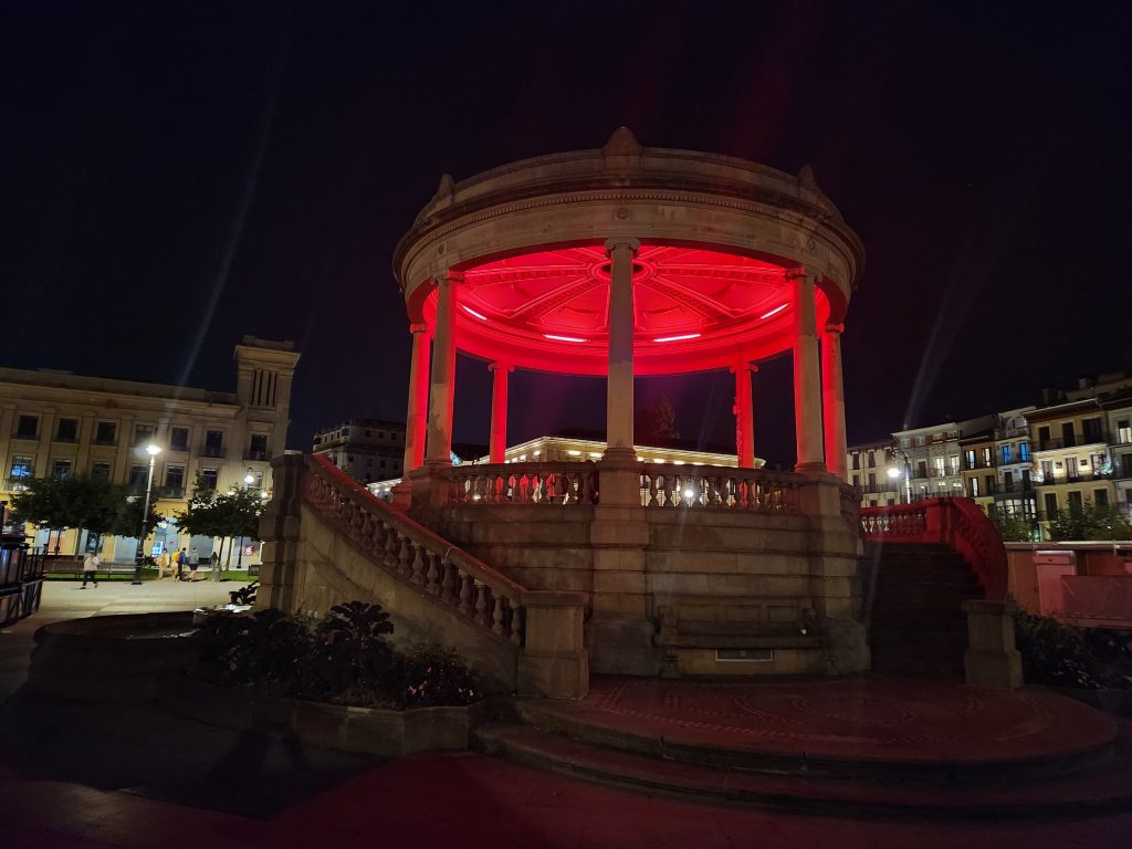 Junto con el Ayuntamiento de Pamplona, pusimos la fachada de este Ayuntamiento de color rojo en conmemoración de este día.