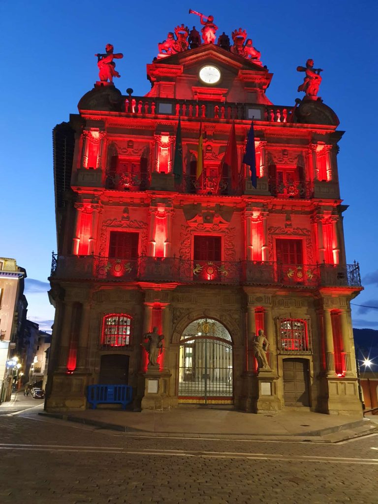 Junto con el Ayuntamiento de Pamplona, pusimos la fachada de este Ayuntamiento de color rojo en conmemoración de este día.